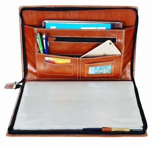 Crafted from premium-quality leather, this document folder offers durability with a sophisticated finish. Designed to securely store and organize important papers, contracts, and presentations, it features fine stitching and a smooth texture for a professional look. Ideal for offices, meetings, and conferences, it combines practicality with timeless style.
